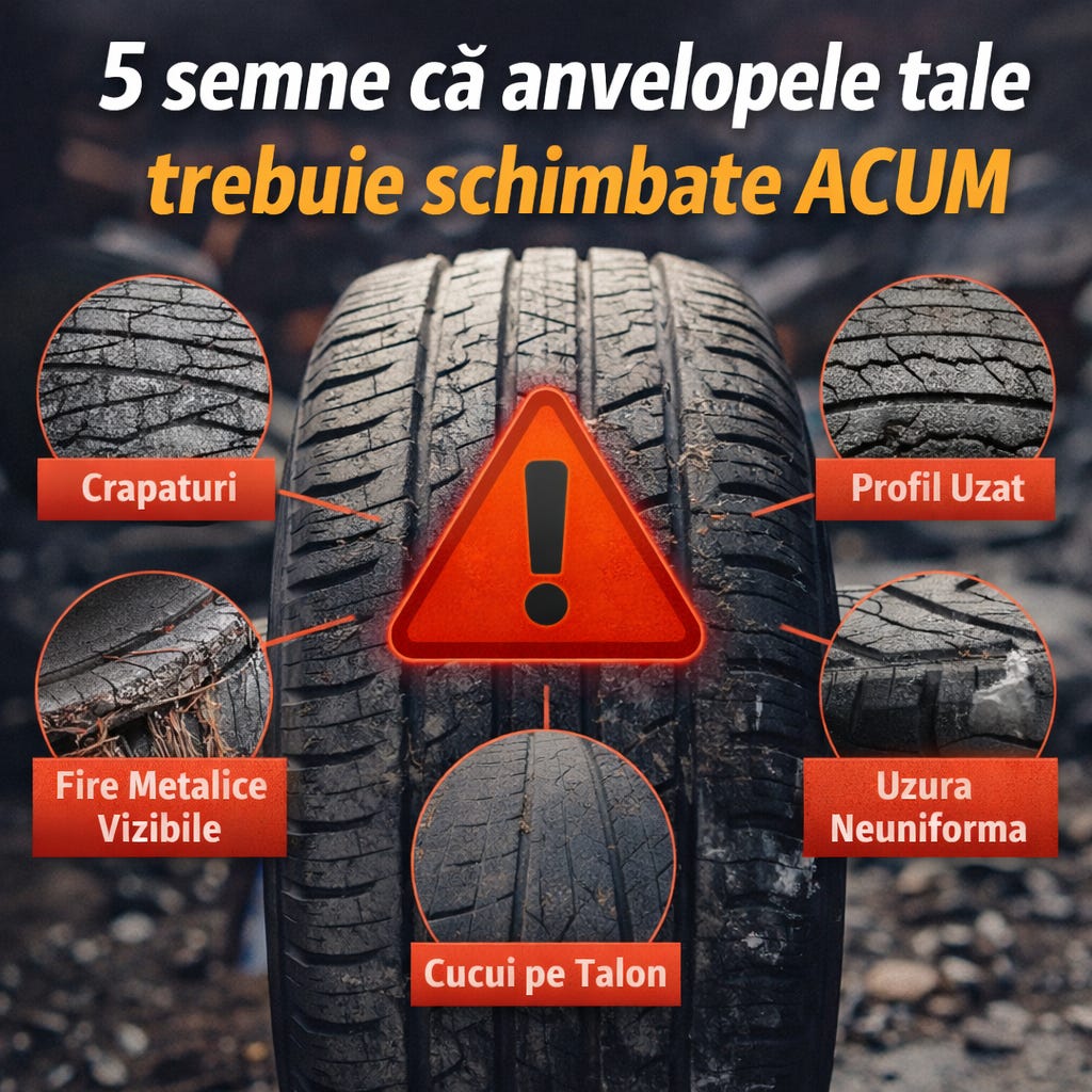 Nu toate panele se anunță cu un poc dramatic. Uneori anvelopa cedează treptat, compromițând siguranța fără să știi. Iată 5 semne clare că e timpul să acționezi — și de ce nu poți amâna.