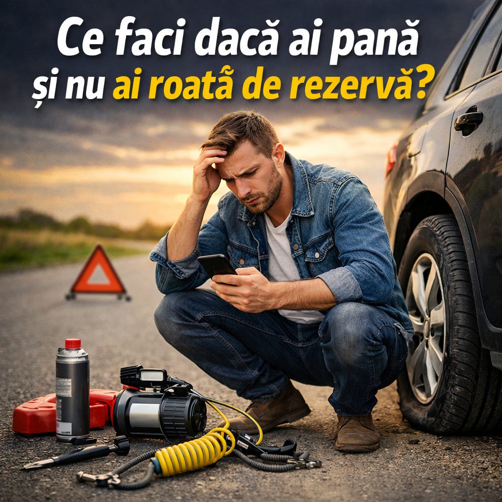 Ai auzit un poc ciudat, apoi mașina a început să tragă într-o parte. Ai pană. Primul reflex? Verifici portbagajul pentru roata de rezervă. Dar... nu e acolo. Fie mașina ta nu vine cu una din fabrică — tendință tot mai frecventă la modelele noi — fie pur și simplu ai uitat să o verifici