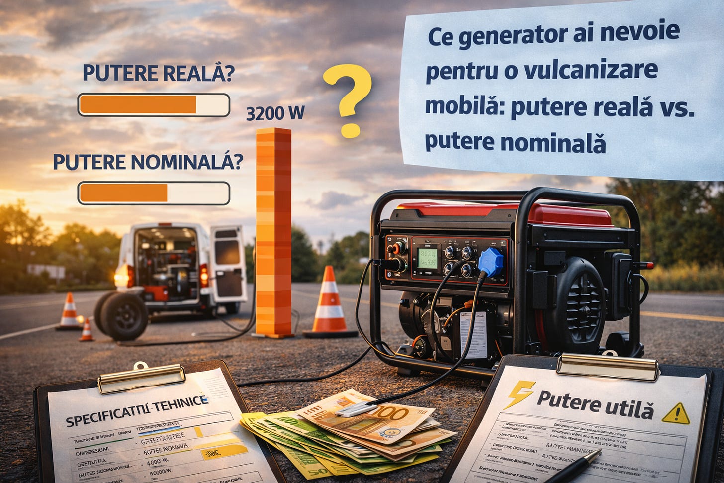 Generatorul e unul dintre cele mai dezbătute subiecte în rândul vulcanizorilor mobili la start. De ce? Pentru că mulți cumpără un generator de 7 kW și descoperă că nu pornește compresorul. Sau cumpără unul prea mic și riscă să îl ardă rapid.
